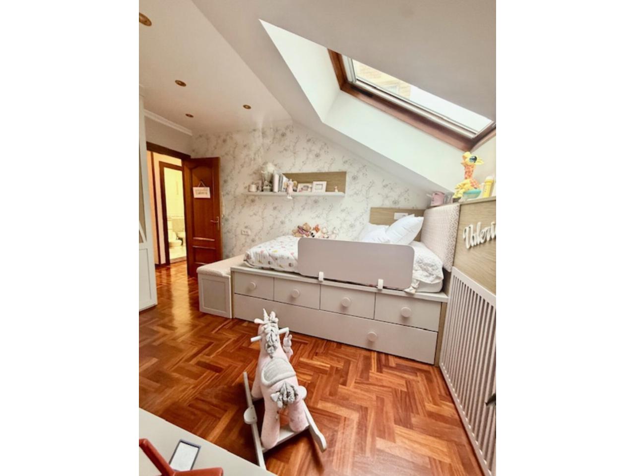 DescripciónEspectacular ático bajocubierta en venta situado en la Avenida Schultz , en el corazón del Llano. Este amplio ático, ubicado en una privilegiada zona cercana al centro de la ciudad, a escasos 10 minutos, te ofrece todo lo que necesitas para disfrutar de la vida. El piso se encuentra en la planta sexta, siendo el único piso en la planta de un edificio construido en el 2000. Está en un estado excelente, con preciosos suelos de parquet, carpintería interior, cristales recién cambiados y caldera nueva de hace un año. Este amplio inmueble de 100 m² construidos y 80 m² útiles, cuenta con un hall de entrada, sin largos pasillos, dos habitaciones, distribuidas de manera eficiente para maximizar el espacio, con dos armarios hechos a medida, un baño y un aseo con posibilidad de poner plato de ducha ( con diseño ya realizado) tendrás todo el espacio que necesitas para tu familia o para quienes buscan comodidad y gran amplitud. La cocina está totalmente reformada en madera maciza de gran calidad y está perfectamente equipada para poder disfrutarla con comodidad. El salón con un amplio velux y una ventana se presenta como el espacio ideal para reuniones familiares o con amigos, combinado con la posibilidad de disfrutar de momentos de relax. La calefacción es de gas natural lo que proporciona un ambiente muy agradable. También un trastero de 6 m2 y tiene opción a una gran plaza de garaje, para guardar dos coches y una moto . La luminosidad es uno de los puntos fuertes de este piso, ya que al ser todo exterior, y con su ubicación suroeste, cada rincón se baña de luz natural. En las cercanías, se encuentran todos los servicios necesarios para la vida diaria como supermercados, colegios, centros de salud y áreas verdes donde disfrutar de agradables paseos. Todo ello convierte a este piso en una opción perfecta para quienes valoran la comodidad de disponer de todo a su alcance sin renunciar a la tranquilidad. Este inmueble no solo ofrece un excelente espacio y distribución, sino también la ventaja de estar en una ubicación estratégica en Gijón. En resumen, la combinación de su ubicación, espacio y accesibilidad garantiza una alta calidad de vida para sus habitantes. No pierda la oportunidad de hacer de este lugar su próximo hogar. Para programar una visita o recibir más información, no dude en ponerse en contacto con nosotras. (Opción de garaje)